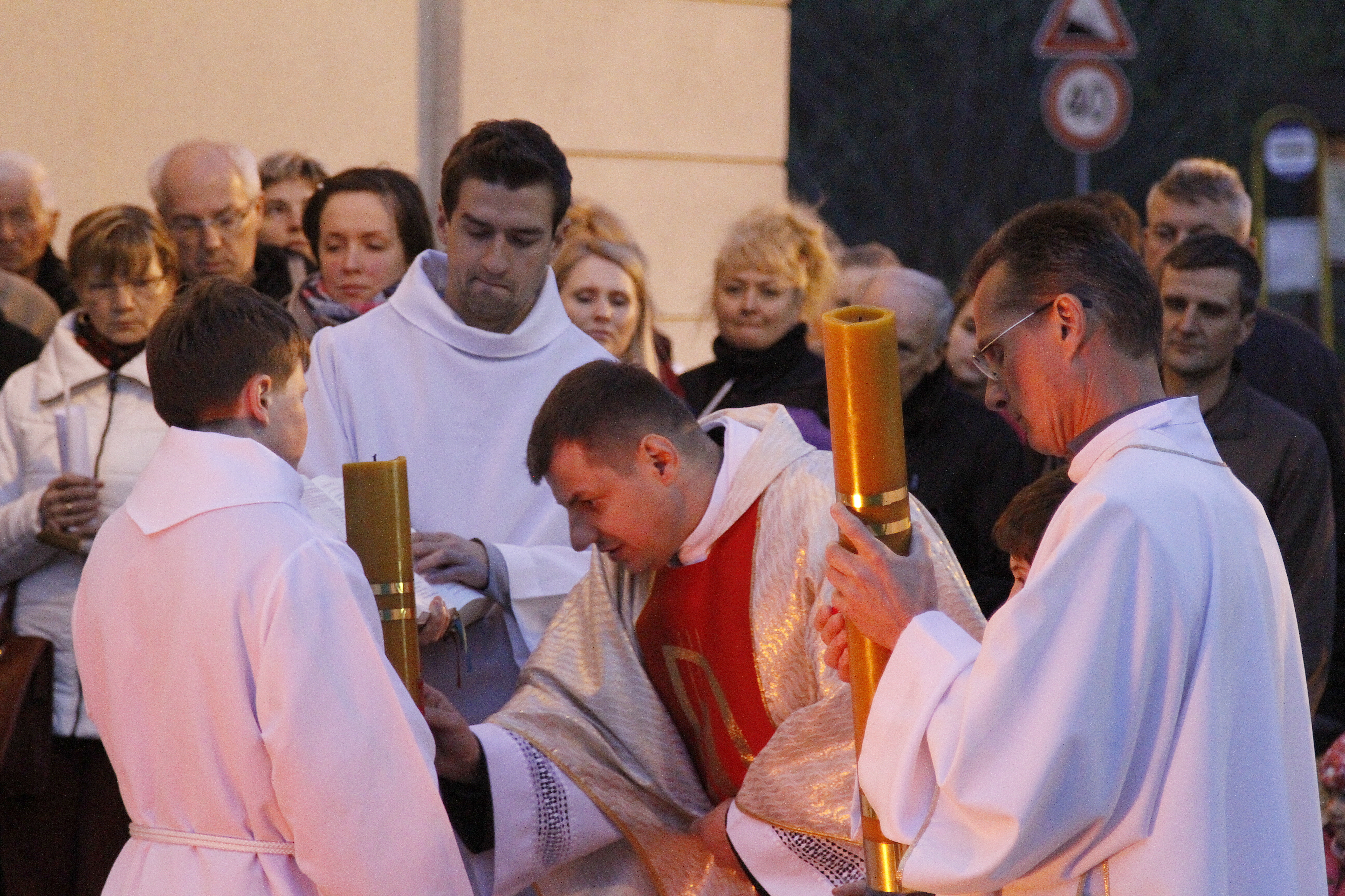 Podle biblického počítání času, kdy den začíná večerem, tak vlastně neděle Zmrtvýchvstání začíná na Bílou sobotu po západu slunce. V naší farnosti začala vigilie Zmrtvýchvstání ve 20:00 hodin obřadem žehnání ohně a zapálením paškálu – velikonoční svíce, která symbolizuje Krista zmrtvýchvstalého.